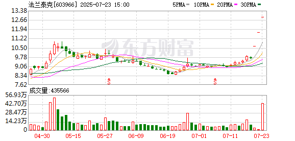 7月23日,法兰泰克(603966)发布公告,公司股票在2025年7月21日、22日及23日连续3个交易日,收盘价格涨幅偏离值累计超过20%。